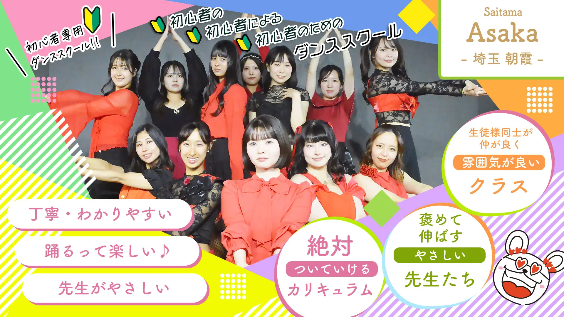 初めてのダンス。運動音痴。リズム感なし。年齢が心配。そんな心配がなく無理なくちょー初心者が始められるカリキュラムをご用意しています。