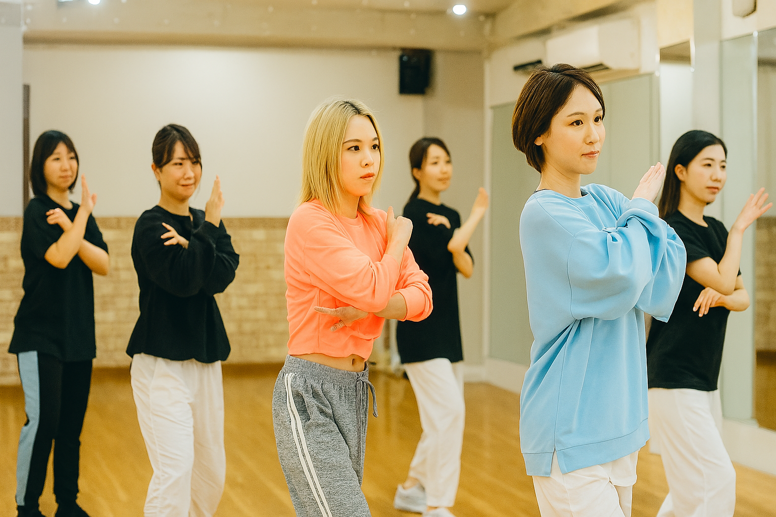 ついていけるかな。リズム感ないからどうしよう。若い子の中に混じるの恥ずかしい。多くの不安を解消できるちょー初心者から始められるカリキュラム、レッスンになっています。