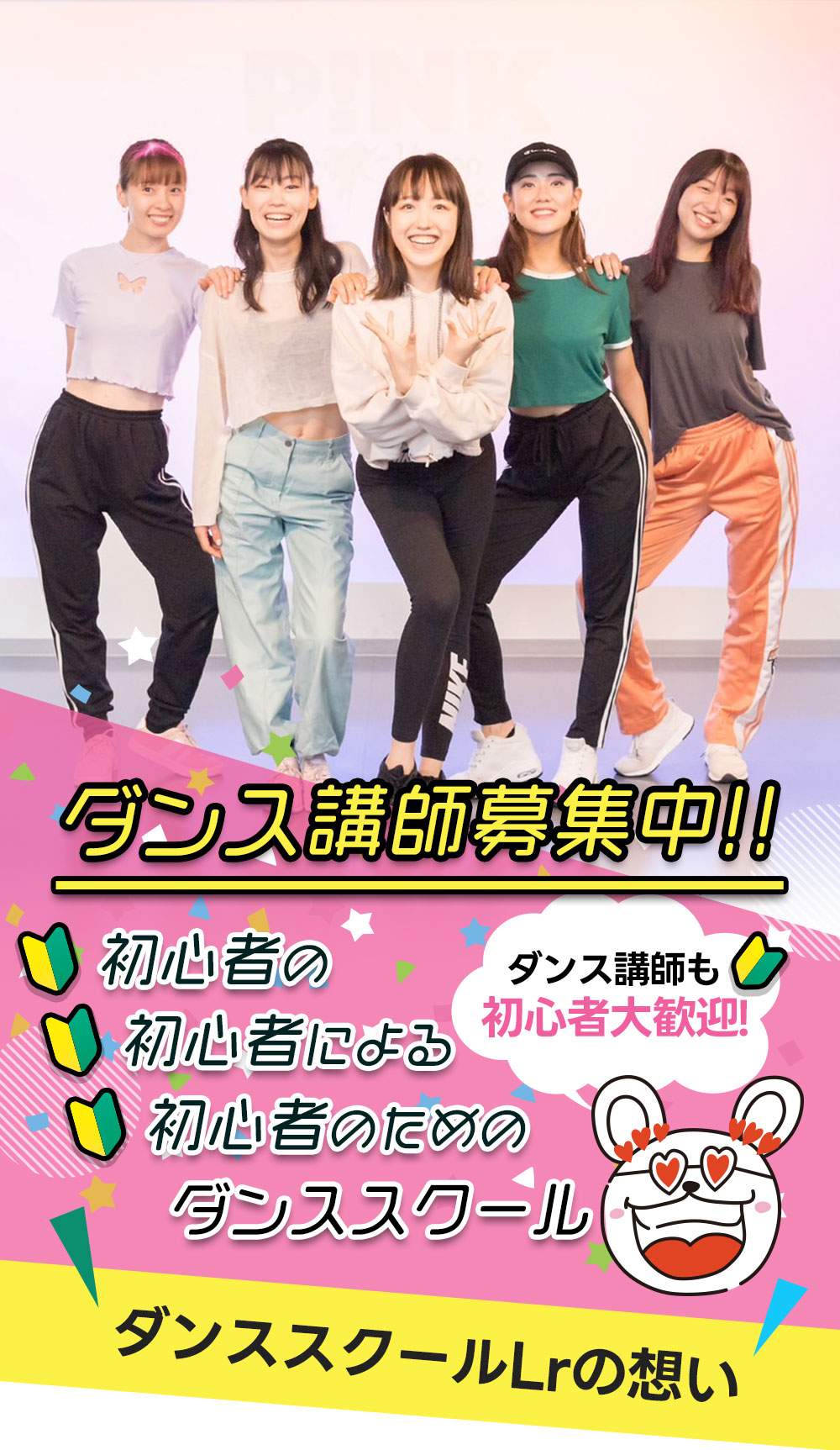 初心者向けダンススクールLrは初心者がどうしたら続けていけるだろうか、だけを考えているから、レベルを上げない、本当の本気の初心者向けダンスレッスンを提供しています。